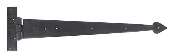 The FROM THE ANVIL® Beeswax 22″ Arrow Head T Hinges are traditionally crafted door hinges featuring an elegant arrow head design. These hinges are hammered into shape from mild steel using traditional blacksmith methods with anvil and fire. The authentic beeswax finish provides a subtle matt richness with natural color variations from blue to deep ochre, offering a softer alternative to black powder coating. Each pair comes complete with matching stainless steel wood screws and is ideal for traditional plank doors when used with Suffolk latches.