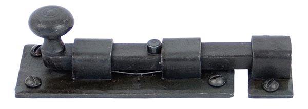 The FROM THE ANVIL® Beeswax 4″ Straight Knob Bolt is a versatile and authentic-looking window and door bolt featuring a simple round knob design. This multi-purpose bolt can be mounted both horizontally and vertically thanks to its strong spring mechanism. The traditional beeswax finish provides a subtle matt richness with natural color variations from blue to deep ochre, offering a softer alternative to black powder coating. Supplied complete with stainless steel wood screws and various keeps for different applications.