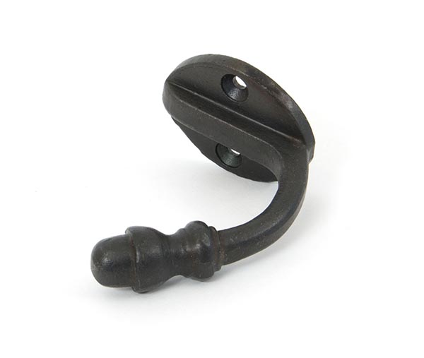 The FROM THE ANVIL® Beeswax Coat Hook is a beautifully forged mild steel coat hook featuring a traditional design with a decorative finial. The authentic beeswax finish provides a subtle matt richness with natural color variations from blue to deep ochre, offering a softer alternative to black powder coating. This versatile hook comes complete with matching stainless steel wood screws and can be used individually or combined with other hooks to create a striking feature piece. Perfect for both functional storage and decorative appeal in any home setting.