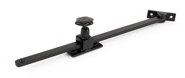 The FROM THE ANVIL® Black 12″ Sliding Stay is a stylish and functional window control mechanism featuring a sleek black finish. This sliding stay offers a sophisticated alternative to standard window stays, with a secure locking mechanism that fixes the stay in position by tightening the screw onto the sliding arm. The high-temperature baked finish provides excellent durability and corrosion resistance, making it ideal for traditional settings where it creates a bold contrast against timber windows. Supplied complete with matching stainless steel wood screws for installation.