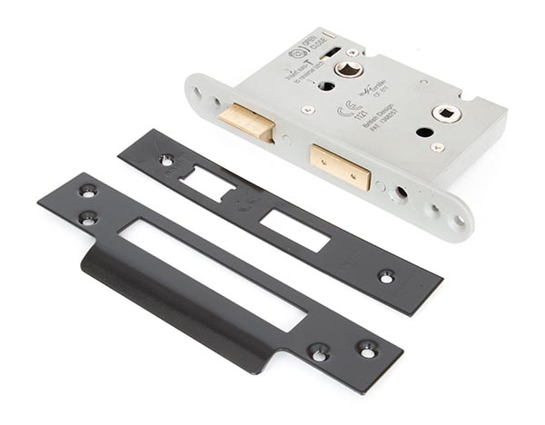 The FROM THE ANVIL® Black 3″ Heavy Duty Bathroom Mortice Lock is a robust and reliable bathroom locking solution. This British Standard insurance rated lock features a durable black finish with a subtle sheen that provides excellent contrast on both stained and painted timber. The lock is baked at high temperatures during manufacturing for superior corrosion resistance. Compatible with 57mm centre bathroom sprung lever handles, this versatile lock comes complete with matching stainless steel wood screws and strike plates. Ideal for traditional settings, this heavy-duty lock combines security with aesthetic appeal.