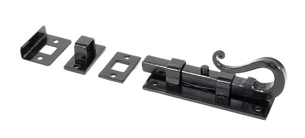 The FROM THE ANVIL® Black 4″ Shepherd’s Crook Universal Bolt is a versatile and durable door/window security solution. This multi-purpose bolt features a traditional shepherd’s crook design and comes complete with various keeps for different applications. The bolt incorporates a strong spring mechanism allowing for both horizontal and vertical installation. Finished in a sophisticated black coating that’s oven-baked for superior corrosion resistance, this bolt includes matching stainless steel wood screws for installation. The classic black finish provides an attractive contrast against both stained and painted timber surfaces.