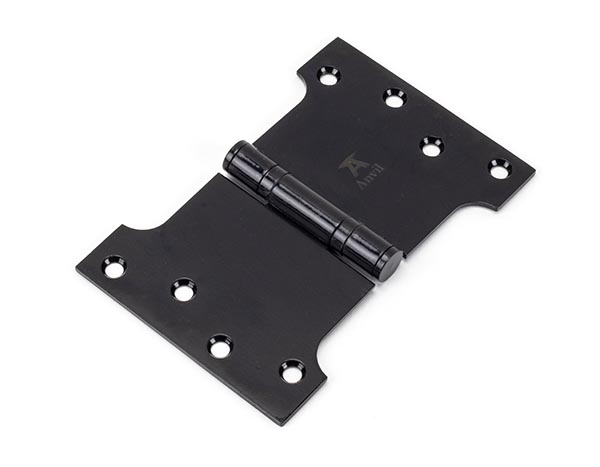 The FROM THE ANVIL® Black Parliament Hinges are premium-quality 4″ x 4″ x 6″ stainless steel hinges designed to project doors or windows 4 inches away from the architrave or frame. Featuring smooth-operating ball bearings in the knuckle for enhanced durability and performance, these hinges are manufactured from grade 304 stainless steel with a sophisticated black finish. Each pair comes complete with matching stainless steel wood screws, making them perfect for both practical function and aesthetic appeal.