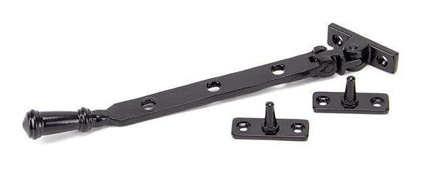 The FROM THE ANVIL® Black 8″ Regency Stay includes an elegantly designed window stay with smooth, rounded features that brings a touch of classic sophistication to any property. This traditional stay comes complete with two fixing plates and matching stainless steel wood screws. The black finish offers a beautiful subtle sheen that creates a striking contrast against both stained and painted timber. The finish is baked at high temperatures for superior durability and corrosion resistance, making it ideal for long-term use in traditional settings.