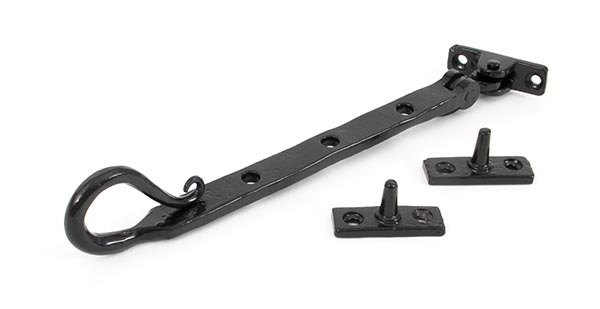 The FROM THE ANVIL® Black 8″ Shepherd’s Crook Stay includes a traditionally designed window stay with matching fixing plates, handcrafted by master blacksmiths. This elegant window hardware features a classic shepherd’s crook design forged from mild steel for superior strength and character. The durable black finish is oven-baked for corrosion resistance and provides a beautiful contrast against timber windows. Supplied complete with stainless steel wood screws for installation.