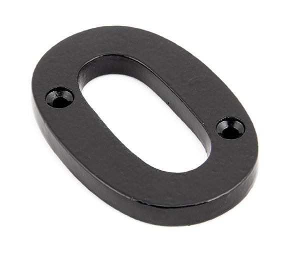 The FROM THE ANVIL® Black Numeral 0 is a robust and stylish door number crafted with durability in mind. This weighty numeral features a sophisticated black finish with a subtle sheen, making it an excellent choice for both traditional and contemporary entrances. The finish is oven-baked for superior corrosion resistance and longevity. Supplied complete with matching stainless steel wood screws for easy installation.