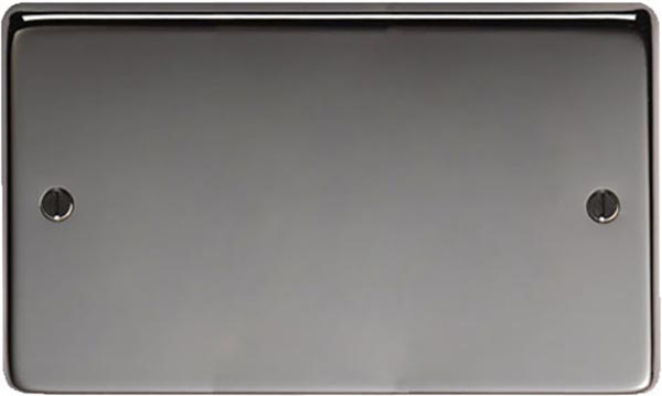 The FROM THE ANVIL® Black Nickel Double Blank Plate is an elegantly designed cover plate that provides a sophisticated solution for concealing unused electrical boxes. Featuring a premium black nickel finish, this double-width plate comes complete with matching stainless steel wood screws. Its sleek design and quality construction make it perfect for complementing both modern and traditional interior styles.