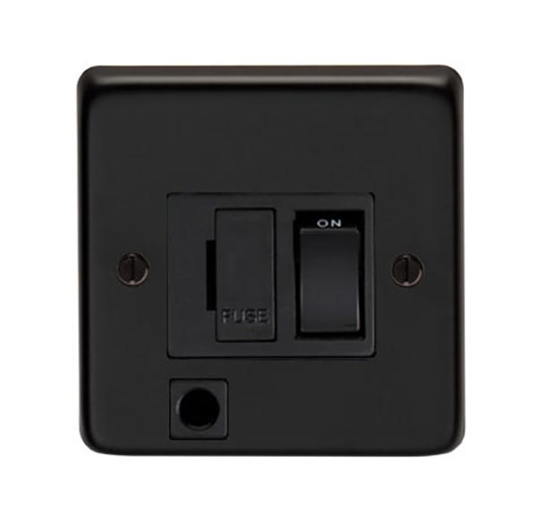 The FROM THE ANVIL® MB 13 Amp Switched Fuse + Flex is a sophisticated matt black electrical switch plate that combines functionality with contemporary style. This versatile unit features an integrated 13 amp fused switch with a convenient flex outlet and helpful neon indicator light. Designed to complement modern interiors, the plate measures 86mm x 86mm and comes complete with matching stainless steel wood screws. Perfect for creating a controllable spur from your main electrical circuit, this switch plate showcases a refined matt black finish achieved through a high-temperature baking process that creates a subtle, durable patina.