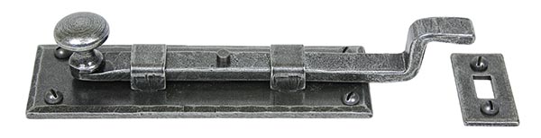 The FROM THE ANVIL® Pewter 6″ Cranked Knob Bolt is a versatile and robust door and window security solution. This multi-purpose bolt features a classic round knob design and can be mounted both horizontally or vertically thanks to its strong spring mechanism. Finished in a luxurious Pewter Patina that creates rich, contrasting textures, this bolt combines traditional charm with practical functionality. The package includes matching stainless steel wood screws for installation.