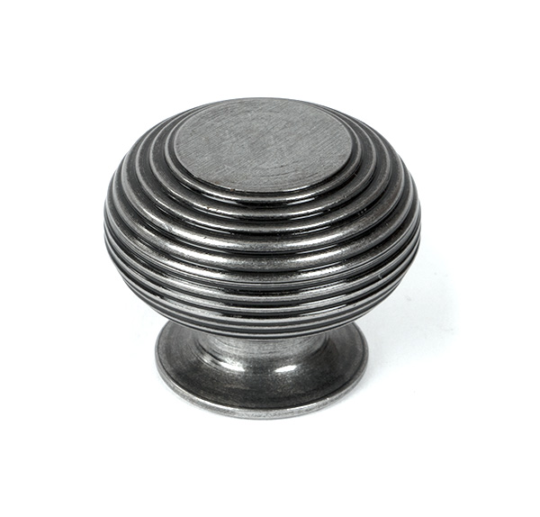 The FROM THE ANVIL® Pewter Beehive Cabinet Knob features a distinctive beehive design forged from mild steel and hand-finished by expert craftsmen. The elegant pewter patina finish creates a rich, textured appearance that combines rustic charm with contemporary appeal. This versatile 40mm knob is perfect for cupboards, doors, and drawers, and comes complete with a stainless steel M4 mounting screw. Its unique manufacturing process creates contrasting textures that complement both characterful period homes and modern interiors, particularly when paired with natural materials like oak or various paint colors.