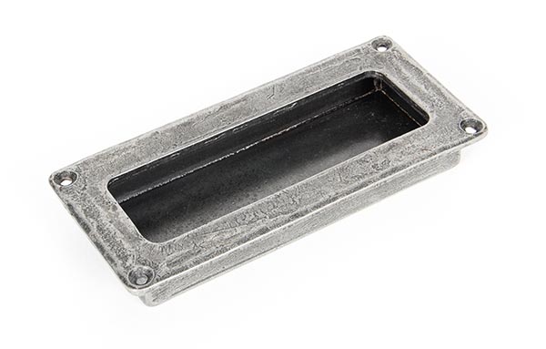 The FROM THE ANVIL® Pewter Flush Handle is a beautifully crafted drawer pull featuring a rich pewter patina finish. This versatile handle combines traditional craftsmanship with contemporary appeal, making it suitable for both period and modern interior settings. The handle includes stainless steel wood screws and showcases contrasting textures that create a luxurious, characterful appearance. Its durable steel construction ensures longevity, while the flush design offers practical functionality for drawers and cabinets.