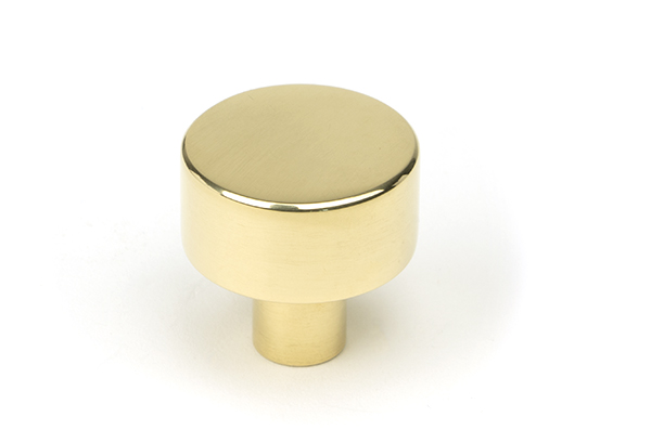 The FROM THE ANVIL® Polished Brass Kelso Cabinet Knob features a timeless and minimalist design perfect for both traditional and contemporary interiors. This 25mm diameter knob comes without a rose for a clean, simplistic look and is crafted from solid unlacquered brass with a beautiful polished finish. Supplied with a stainless steel M4 screw, this versatile piece is ideal for kitchen drawers, cupboards, and doors. The unlacquered brass finish will naturally patinate over time, creating an authentic aged appearance that can be easily restored to its original polished state with simple maintenance.