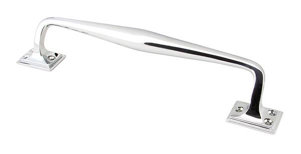 The FROM THE ANVIL® Polished Chrome 300mm Art Deco Pull Handle is a beautifully crafted, hand-forged solid brass door pull featuring an imposing Art Deco design. This weighty, high-quality handle boasts a bright, mirror-like polished chrome finish that’s perfect for contemporary settings. Ideal for large entrance doors or commercial applications, this handle combines both aesthetic appeal and durability. Supplied complete with matching stainless steel wood screws for installation.