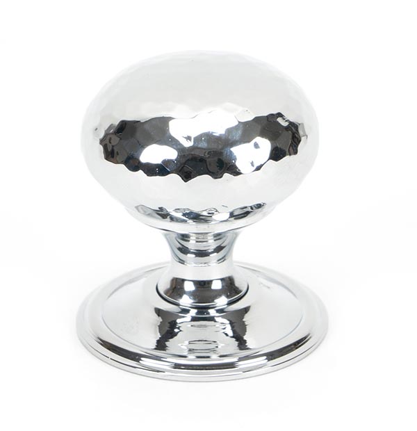 The FROM THE ANVIL® Polished Chrome Hammered Mushroom Cabinet Knob features a beautifully hand-hammered surface created by skilled blacksmiths, offering both aesthetic appeal and durability. Forged from solid brass with a high-shine polished chrome finish, this 38mm cabinet knob provides a contemporary look perfect for cupboards, doors and drawers. The distinctive hammered texture adds character while maintaining a sophisticated appearance, making it an excellent choice for modern interiors.