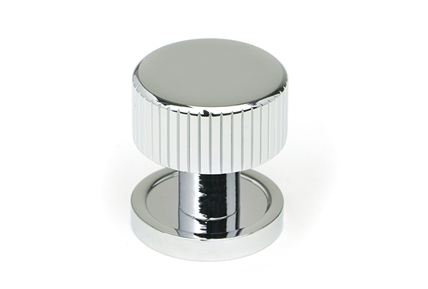 The FROM THE ANVIL® Polished Chrome Judd Cabinet Knob features a contemporary design with elegant parallel lines that showcase exceptional craftsmanship. Made from solid brass with a high-sheen polished chrome finish, this 25mm cabinet knob includes a plain rose base and comes complete with stainless steel mounting hardware. Perfect for modern kitchen drawers, cupboards, and doors, it offers a cool, clean aesthetic that pairs beautifully with the Reeded and Hinton ranges.