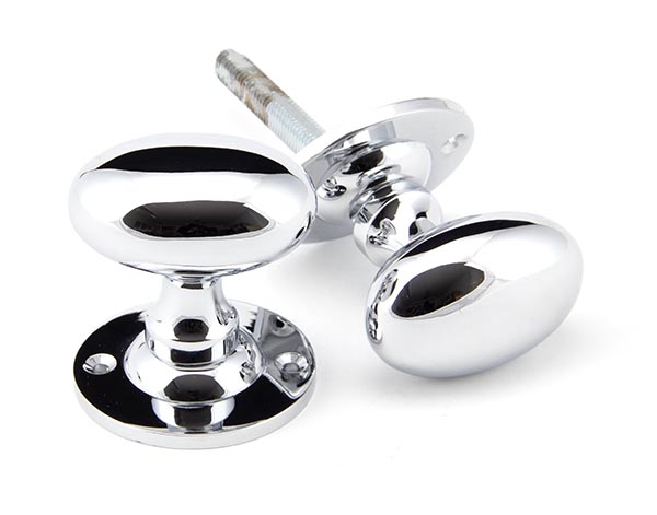| Finish | Oval door knobs: Polished chrome, Rose plates: Polished chrome, Threaded spindle: Zinc plated, Mounting screws: Stainless steel |