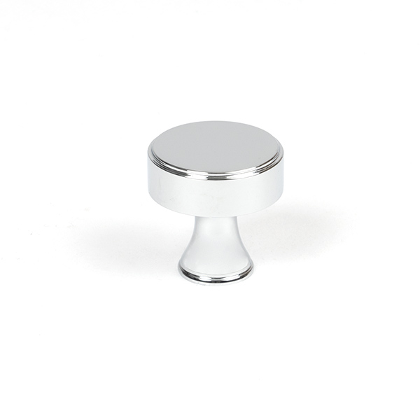 The FROM THE ANVIL® Polished Chrome Scully Cabinet Knob features an elegant bevelled edge design that adds sophisticated character to any space. This contemporary 25mm cabinet knob is crafted from solid brass with a high-sheen polished chrome finish, making it perfect for modern kitchen drawers, cupboards, and doors. The knob comes complete with a stainless steel M4 mounting screw for easy installation.