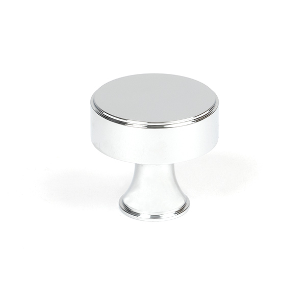 The FROM THE ANVIL® Polished Chrome Scully Cabinet Knob features an elegant bevelled edge design that adds character and depth to any space. This contemporary 32mm cabinet knob is crafted from solid brass with a high-sheen polished chrome finish, making it perfect for modern kitchen drawers, cupboards, and doors. Each knob comes complete with a stainless steel M4 fixing screw for easy installation. Part of the sophisticated Scully range, this knob offers a cool, clean aesthetic with its mirror-like chrome finish.