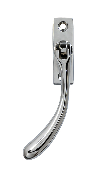 The FROM THE ANVIL® Polished Chrome Slim Peardrop Espag is a contemporary window handle featuring a sleek peardrop design with a high-sheen polished chrome finish. This left-handed espagnolette handle includes a hinged mechanism for easy operation and comes with a 7mm² x 38mm spindle. The slim fixing plate makes it versatile for installation on both uPVC and timber windows. Complete with matching stainless steel M5 screws, this handle combines modern security features with elegant styling.