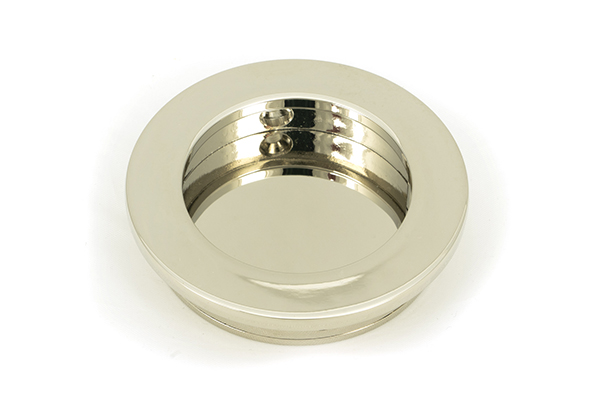 The FROM THE ANVIL® Polished Nickel 60mm Plain Round Pull is an elegantly designed flush pull handle perfect for sliding doors and pocket door systems. Featuring a bright, reflective polished nickel finish over solid brass construction, this versatile pull combines modern sophistication with traditional warmth. The simple, clean circular design coordinates beautifully with other products in the range while providing reliable functionality. Supplied complete with matching stainless steel wood screws for easy installation.