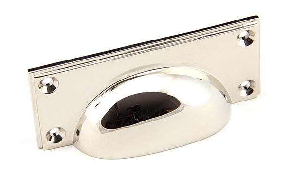 The FROM THE ANVIL® Polished Nickel Art Deco Drawer Pull is an elegantly designed cabinet handle that combines classic Art Deco styling with contemporary functionality. Made from solid brass with a high-quality polished nickel finish, this pull handle features a sleek curved design with a bright, reflective surface that adds sophistication to both modern and traditional interiors. The handle comes complete with matching stainless steel wood screws for easy installation.