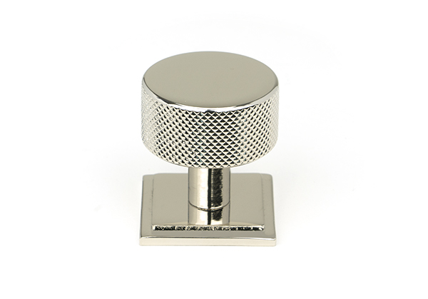 The FROM THE ANVIL® Polished Nickel Brompton Cabinet Knob features a contemporary design with an elegant knurled pattern creating a sophisticated diamond texture. Made from solid brass with a high-quality polished nickel finish, this 32mm cabinet knob combines modern industrial styling with versatile functionality. The bright, reflective finish offers impressive depth while its warm tones make it suitable for both modern and traditional settings. Mounted on a square rose for angular contrast, it comes complete with stainless steel fixing screws.