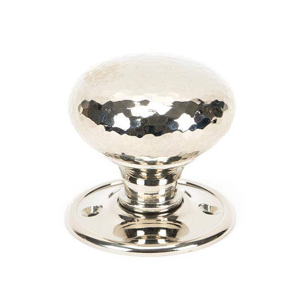 The FROM THE ANVIL® Polished Nickel Hammered Mushroom Mortice/Rim Knob Set features a beautifully hand-hammered texture created by skilled blacksmiths. Forged from solid brass with a high-quality polished nickel finish, this door knob offers both durability and aesthetic appeal. The bright, reflective finish provides impressive depth and versatility, making it suitable for both modern and traditional settings. Compatible with various heavy-duty locks and latches, this knob set comes complete with matching stainless steel wood screws and can be used throughout your property with many matching products available in the hammered range.