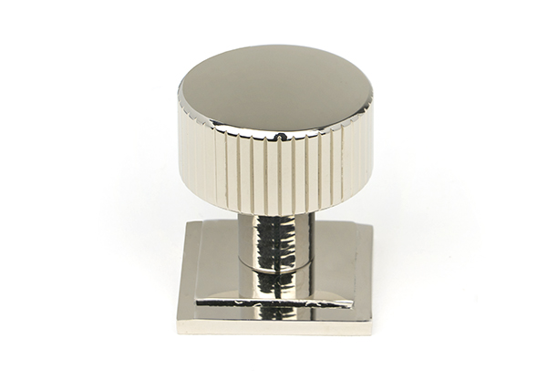 The FROM THE ANVIL® Polished Nickel Judd Cabinet Knob features a contemporary design with elegant parallel lines that showcase exceptional craftsmanship. Made from solid brass with a bright, reflective polished nickel finish, this 25mm knob includes a plain rose base and is perfect for modern kitchen drawers and cupboards. The versatile finish offers impressive depth of reflection, making it suitable for both contemporary and traditional settings. Supplied with a stainless steel M4 mounting screw for easy installation.
