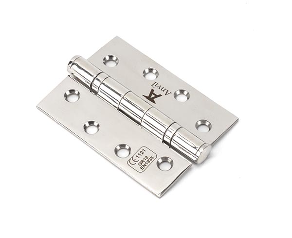 The FROM THE ANVIL® Polished Stainless Steel Ball Bearing Butt Hinges are premium quality 4-inch hinges crafted from grade 304 stainless steel. These hinges feature integrated ball bearings in the knuckle for superior strength and exceptionally smooth operation that will maintain performance over many years. Supplied as a pair with matching stainless steel wood screws, these hinges offer both durability and aesthetic appeal with their high-quality polished finish. Perfect for both new installations and renovations, they can be complemented with matching hinge fronts for a traditional appearance.