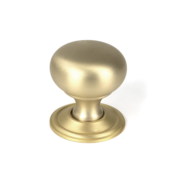 The FROM THE ANVIL® Satin Brass Mushroom Cabinet Knob is a sophisticated cabinet hardware piece forged from solid brass with a beautiful satin finish. The classic mushroom design features a 32mm diameter head and 33mm rose, projecting 36mm from the mounting surface. Perfect for kitchen drawers and cabinets, this high-quality knob combines traditional styling with contemporary elegance. Each knob comes complete with stainless steel mounting hardware.