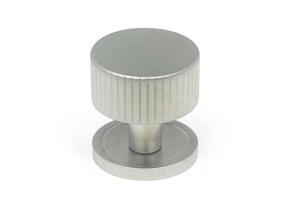 The FROM THE ANVIL® Satin Chrome Judd Cabinet Knob features a modern design with elegant parallel lines that showcase exceptional craftsmanship. Made from solid brass with a high-quality satin chrome finish, this 32mm knob offers an understated alternative to polished chrome with its less reflective appearance and subtle blue undertones. Perfect for contemporary kitchen drawers, cupboards, and doors, it comes complete with stainless steel mounting hardware.