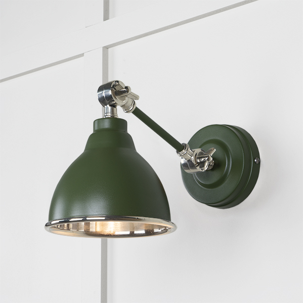 The FROM THE ANVIL® Smooth Nickel Brindley Wall Light combines classic industrial design with contemporary styling. This versatile wall light features a Heath green shade with a sleek nickel-plated brass construction, offering both style and functionality. The adjustable arm allows for precise light positioning, while the E14 fitting is specifically designed for LED bulbs up to 6W (12V). The light includes a matching rose mount and comes fully wired with all necessary fixings, making installation straightforward.