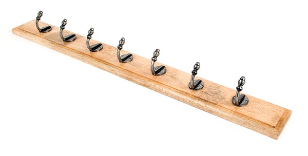 The FROM THE ANVIL® Timber Stable Coat Rack features a rustic stained timber backboard fitted with seven elegant Natural Smooth cast iron hooks. Perfect for entrance doors, hallways, and utility rooms, this practical coat rack combines traditional charm with contemporary styling. The 900mm board comes complete with hidden fixing plates for easy wall mounting, while the clear matt lacquered hooks provide both durability and aesthetic appeal.