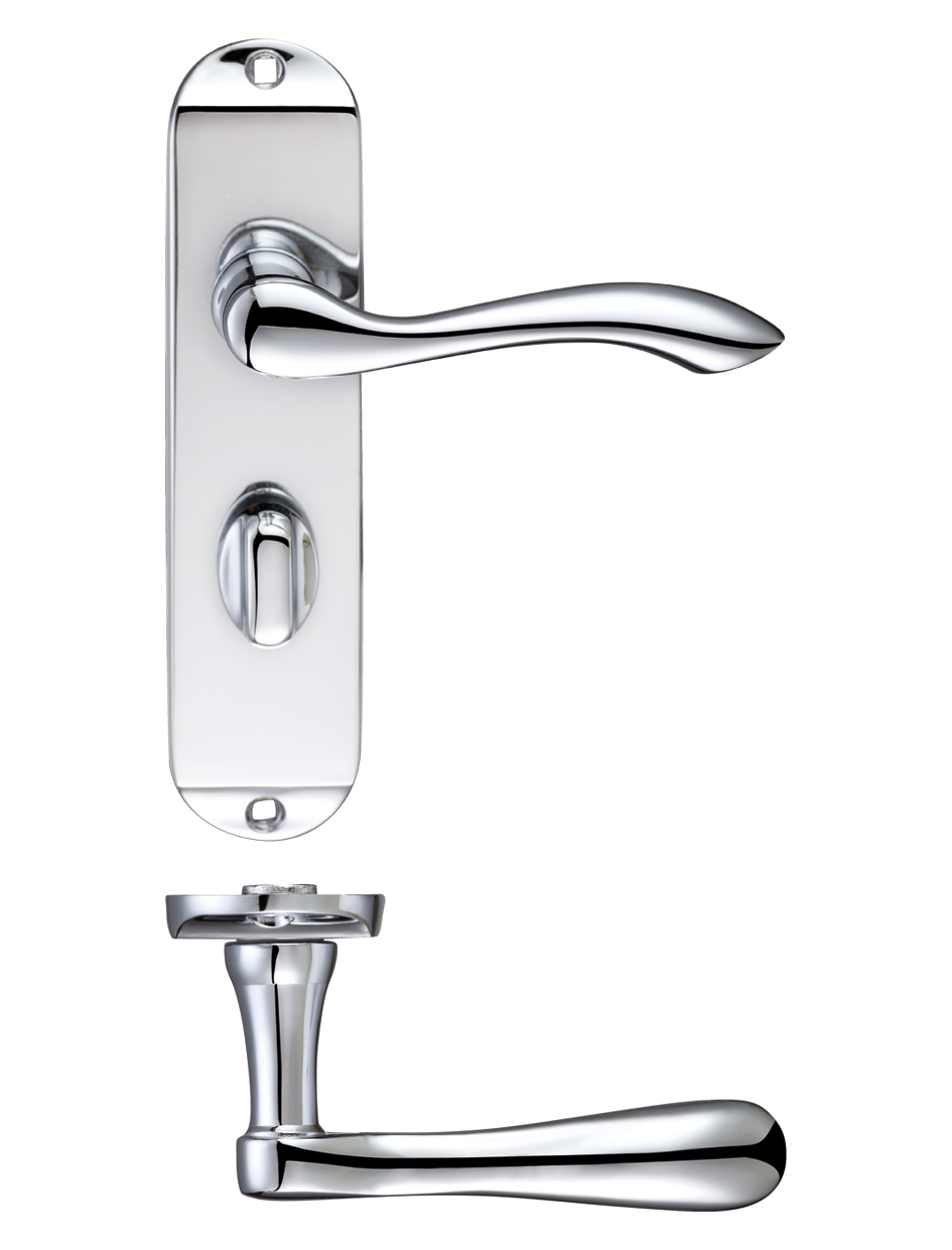 The FULTON & BRAY Arundel Lever Bathroom furniture features an elegant curved lever design on a short backplate with integrated privacy turn, ideal for bathroom applications. This polished chrome set combines contemporary styling with practical functionality, offering a secure privacy lock mechanism with a smooth, easy-to-operate lever action. The compact 175mm x 42mm backplate with 57mm centres provides a sleek profile suitable for modern and traditional bathroom doors. Tested to BS EN 1634-1 standards, this set delivers reliable performance and durability with a brilliant, easy-to-clean polished chrome finish that resists tarnishing and maintains its lustrous appearance.