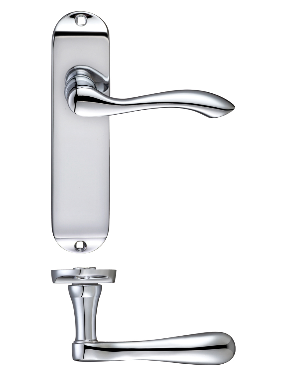 The FULTON & BRAY Arundel Lever Latch Furniture features an elegant polished chrome finish that combines contemporary style with traditional design elements. This short plate door handle set includes a gracefully curved lever handle mounted on a rectangular backplate measuring 175mm x 42mm, complete with spindle assembly and fixing screws. The polished chrome finish provides a bright, reflective surface that complements both modern and classic interior schemes while offering excellent durability and corrosion resistance. Certified to BS EN 1634-1 standards, this handle set delivers reliable performance and quality construction suitable for residential and commercial applications.
