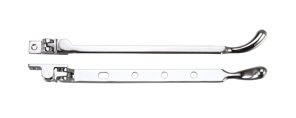 The FULTON & BRAY Bulb End Casement Stay 10″ Polished Chrome is a traditional window hardware component designed to hold casement windows in the open position. Featuring an elegant bulb end design and measuring 250mm (10 inches) in length, this stay combines functional performance with classic styling. The polished chrome finish provides a bright, reflective surface that complements both traditional and contemporary window frames, while offering durability and resistance to tarnishing. This high-quality casement stay ensures smooth operation and reliable window positioning for years to come.