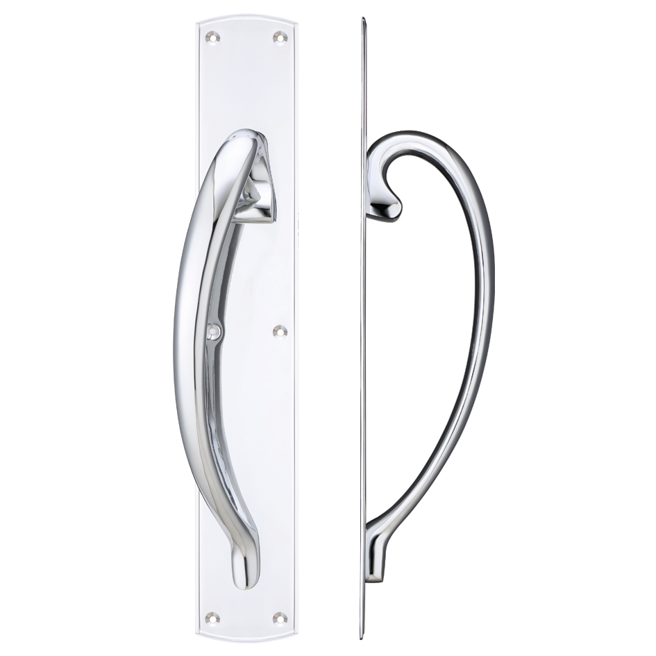 The FULTON & BRAY Cast Brass Large Pull Handle with Backplate in Polished Chrome offers an elegant and substantial door hardware solution for left-handed installations. This beautifully crafted 457mm x 76mm assembly features a gracefully curved pull handle mounted on a rectangular backplate, combining traditional styling with contemporary chrome finish. The cast brass construction ensures durability and long-lasting performance, while the polished chrome finish provides a bright, reflective surface that complements both modern and classic interior designs. Ideal for entrance doors, patio doors, or any application requiring a substantial and stylish pull handle, this left-handed configuration ensures proper ergonomics and functionality.
