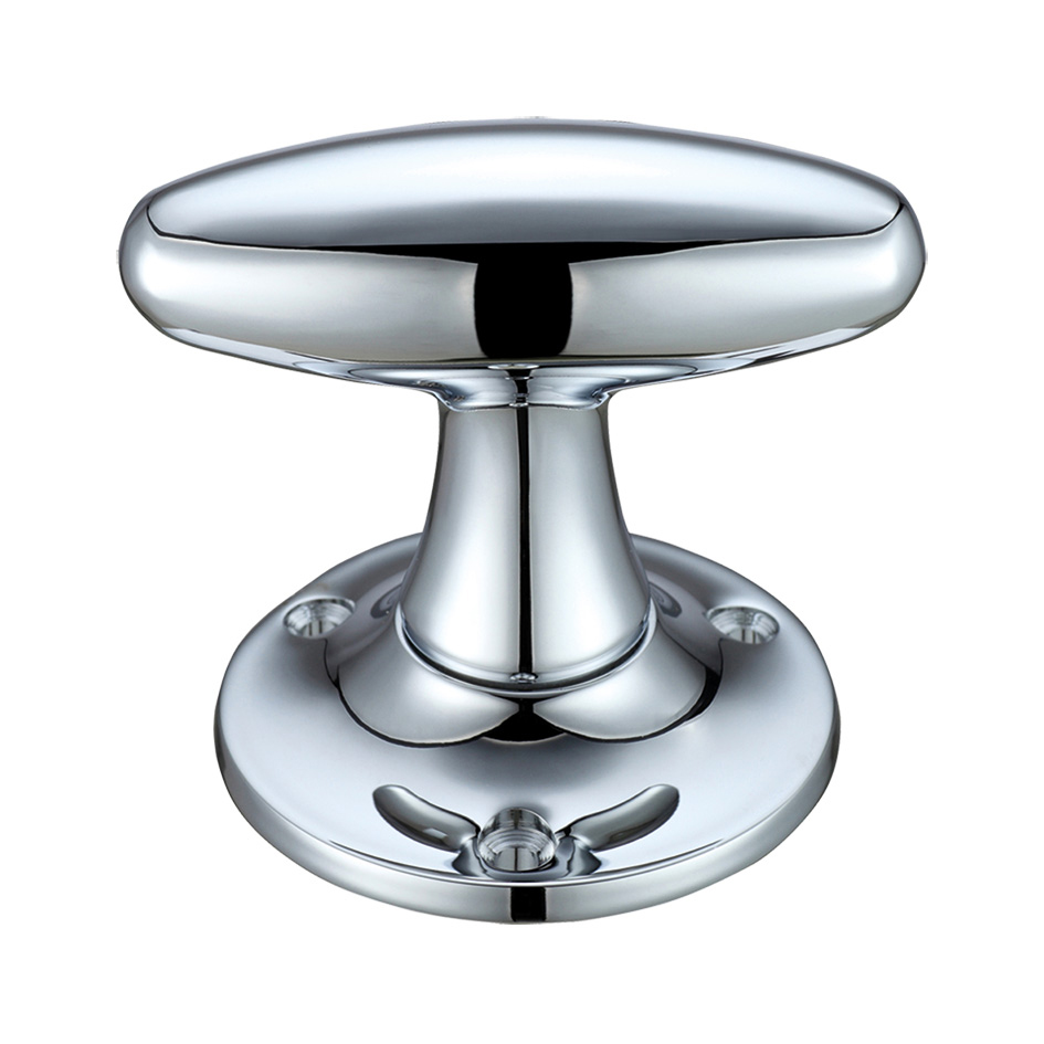 The FULTON & BRAY Extended Oval Mortice Knob Furniture features a contemporary oval-shaped knob design with a 60mm diameter rose in a polished chrome finish. This elegant door furniture combines smooth, rounded aesthetics with a durable metallic construction, making it ideal for modern interior doors. The extended knob design provides comfortable grip and operation, while the polished chrome finish offers a bright, reflective surface that complements contemporary décor and is easy to maintain.