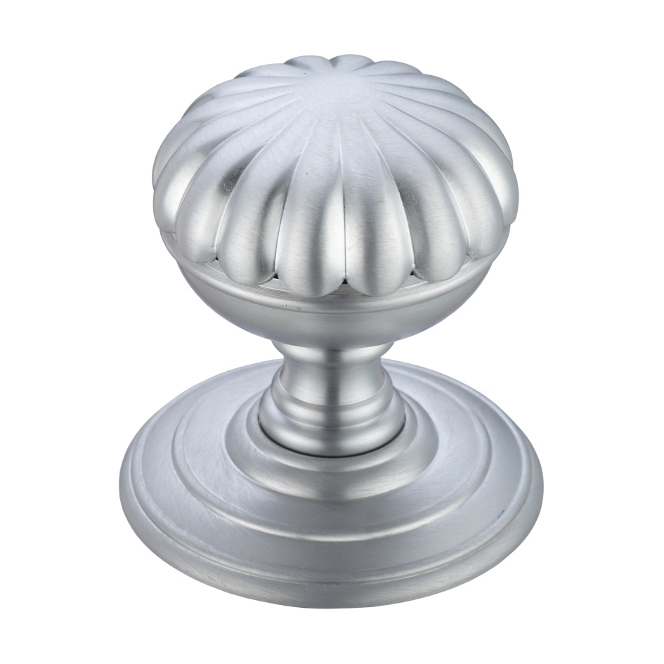 The FULTON & BRAY Flower Mortice Knob features an elegant fluted design with a distinctive flower-like pattern on the knob head, finished in sophisticated satin chrome. This concealed fix mortice knob set includes a 57.5mm diameter knob mounted on a 70mm diameter round rose with a 74mm projection, providing both aesthetic appeal and practical functionality. The grub screw and spindle fixing mechanism ensures secure installation, with compatibility for FB18 and FB42 locks. The satin chrome finish offers a contemporary, low-maintenance surface that resists fingerprints while complementing modern and traditional interiors alike, making it an ideal choice for internal door applications where style meets reliability.