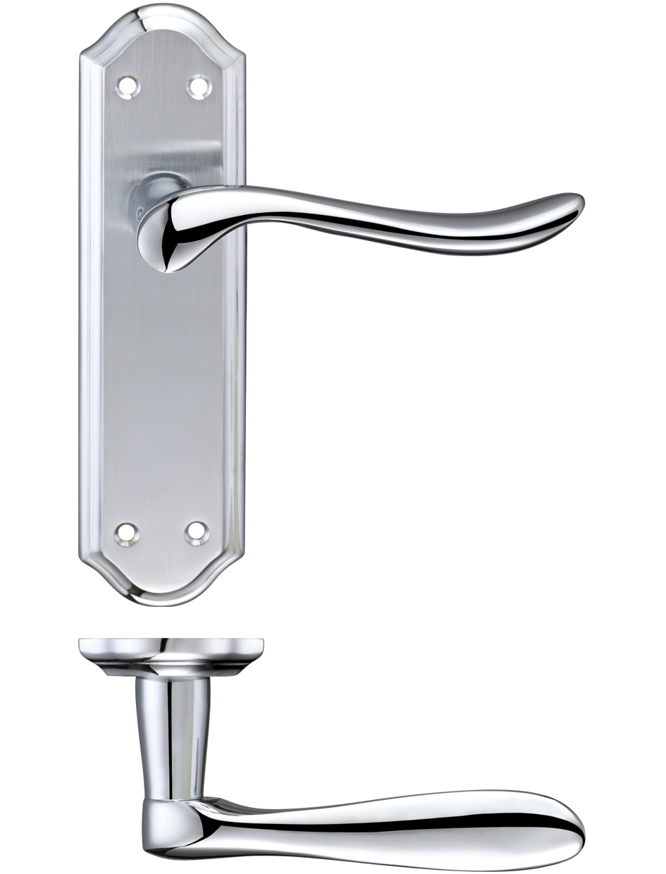 The FULTON & BRAY Lincoln Lever Latch Furniture features an elegant traditional design with a distinctive two-tone finish combining satin chrome backplate with polished chrome lever handle. This high-quality door furniture set includes a lever handle, decorative backplate measuring 180mm x 48mm, and spindle, providing a sophisticated aesthetic for interior doors. The set is certified to BS EN 1634-1 standards, ensuring reliable performance and durability for residential and commercial applications.