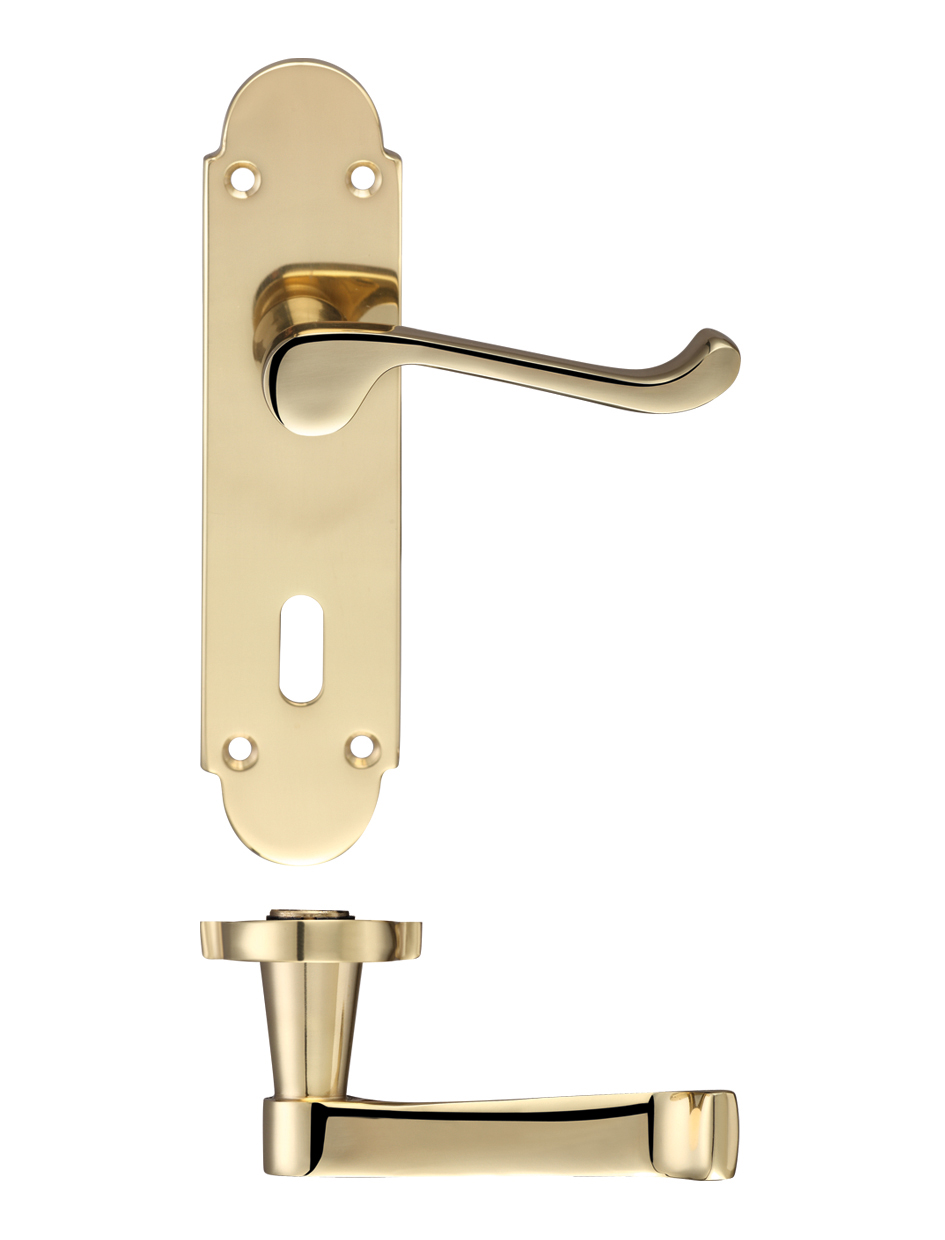 The FULTON & BRAY Oxford Lever Lock Furniture includes an elegant lever handle mounted on a traditional backplate with keyhole, complemented by a matching spindle assembly. Featuring a timeless polished brass finish, this lever lock set offers both classic aesthetics and reliable functionality. The 170mm x 42mm backplate with 57mm centres provides secure fixing, while the smooth lever operation ensures comfortable daily use. Certified to BS EN 1634-1 standards, this furniture set delivers quality construction and professional performance for internal door applications requiring lock functionality.