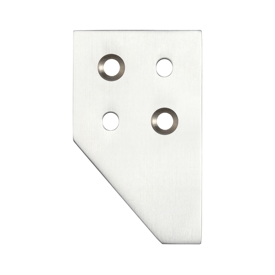 The FULTON & BRAY Sash Strike Plate for Sash Stop in Satin Chrome is a precision-engineered component designed for use with roller sash stops. This compact strike plate measures 29 x 48mm and features a distinctive angled design with four mounting holes for secure installation. The satin chrome finish provides a contemporary brushed appearance that complements modern window hardware while offering durability and corrosion resistance. This essential component ensures smooth operation and secure positioning of sash windows.