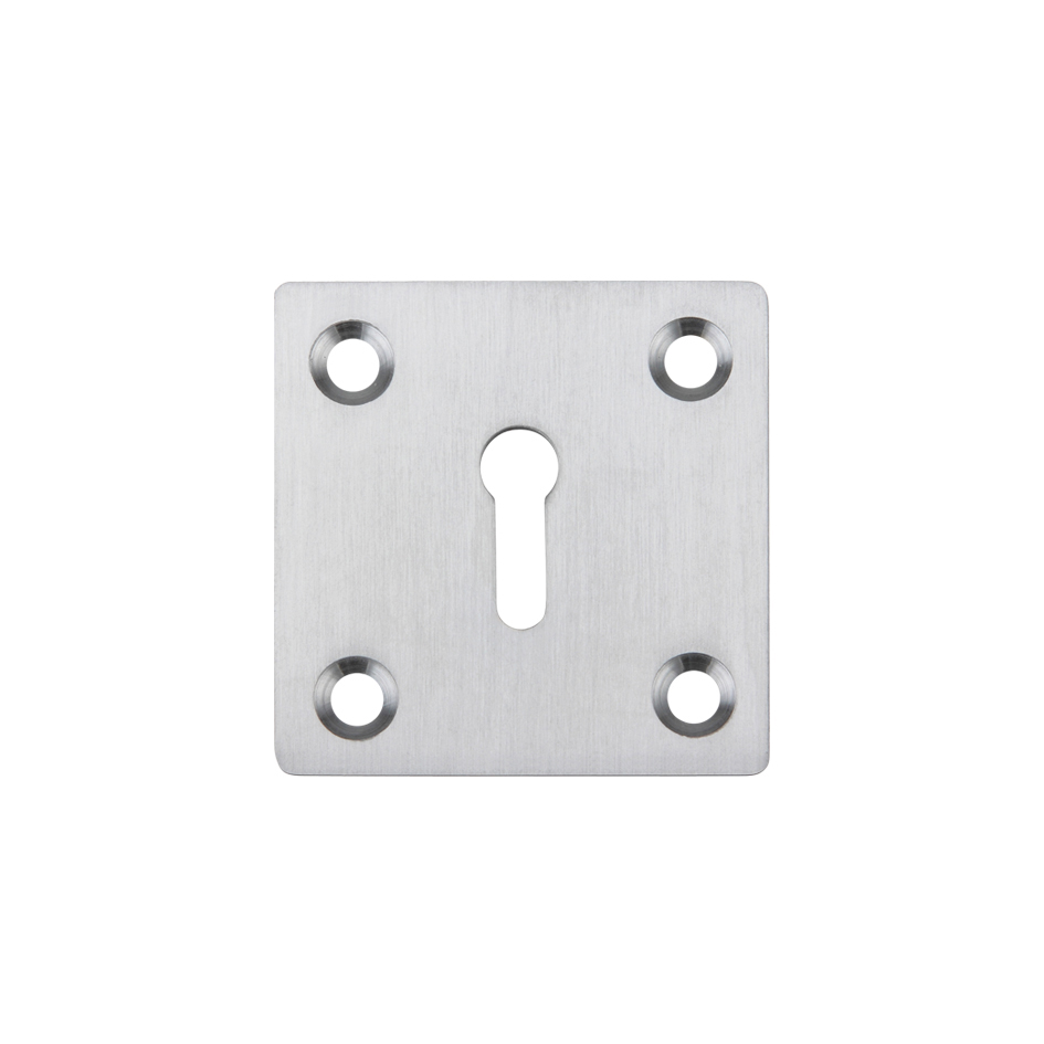 The FULTON & BRAY Square Standard Profile Escutcheon 50mm Satin Chrome is a high-quality keyhole cover plate designed to provide a professional finish around standard profile cylinder locks. Featuring a contemporary square design with a brushed satin chrome finish, this 50mm escutcheon offers both aesthetic appeal and functional protection for door lock mechanisms. The plate includes four pre-drilled countersunk screw holes for secure and straightforward installation, making it an ideal choice for residential and commercial door applications where a modern, clean appearance is desired.