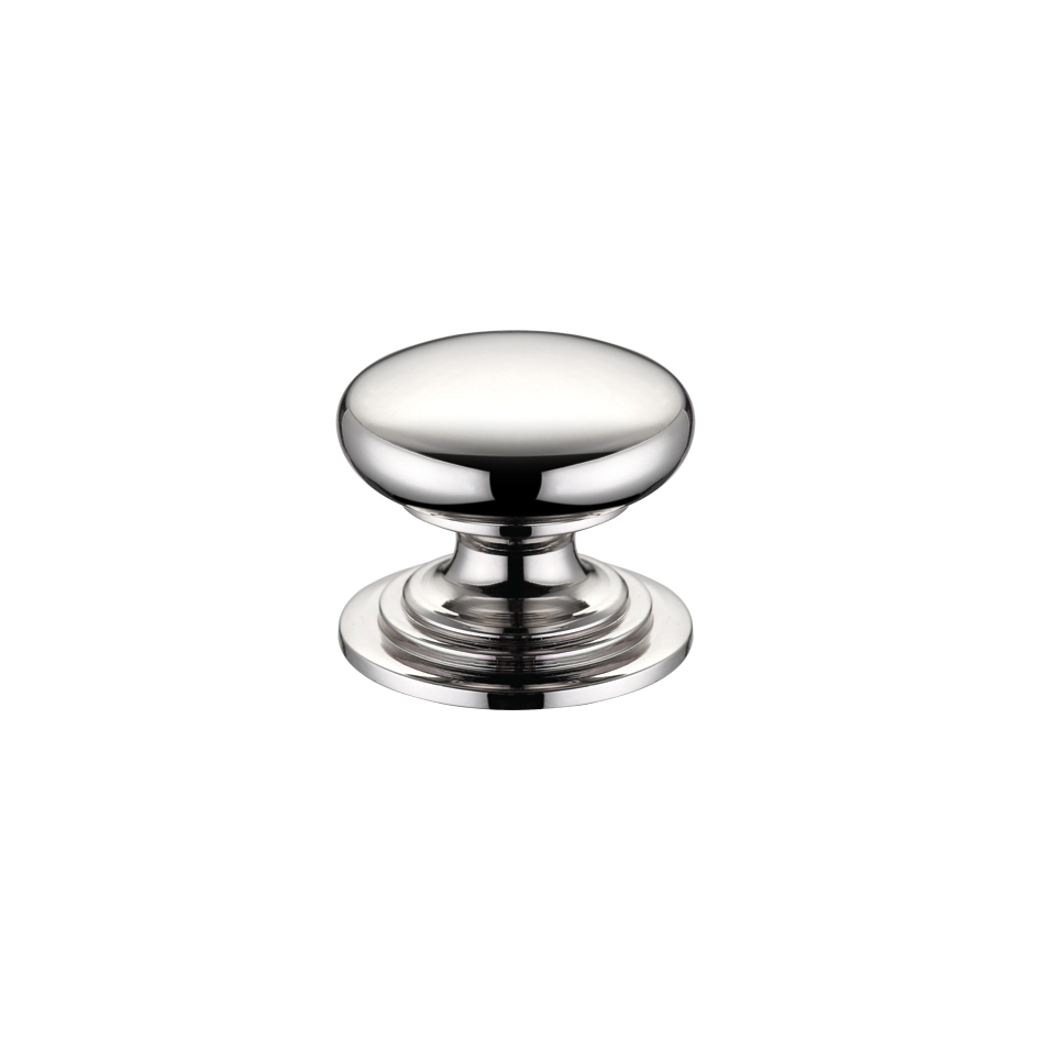 The FULTON & BRAY Victorian Cupboard Knob 25mm dia. – Lacquered Polished Nickel features an elegant Victorian-style design with a smooth, domed profile and stepped circular base. The 25mm diameter knob showcases a premium lacquered polished nickel finish that provides both durability and a lustrous, reflective appearance. This classic design makes it ideal for traditional furniture, kitchen cabinets, wardrobes, and drawer fronts, adding a touch of timeless sophistication to any interior.