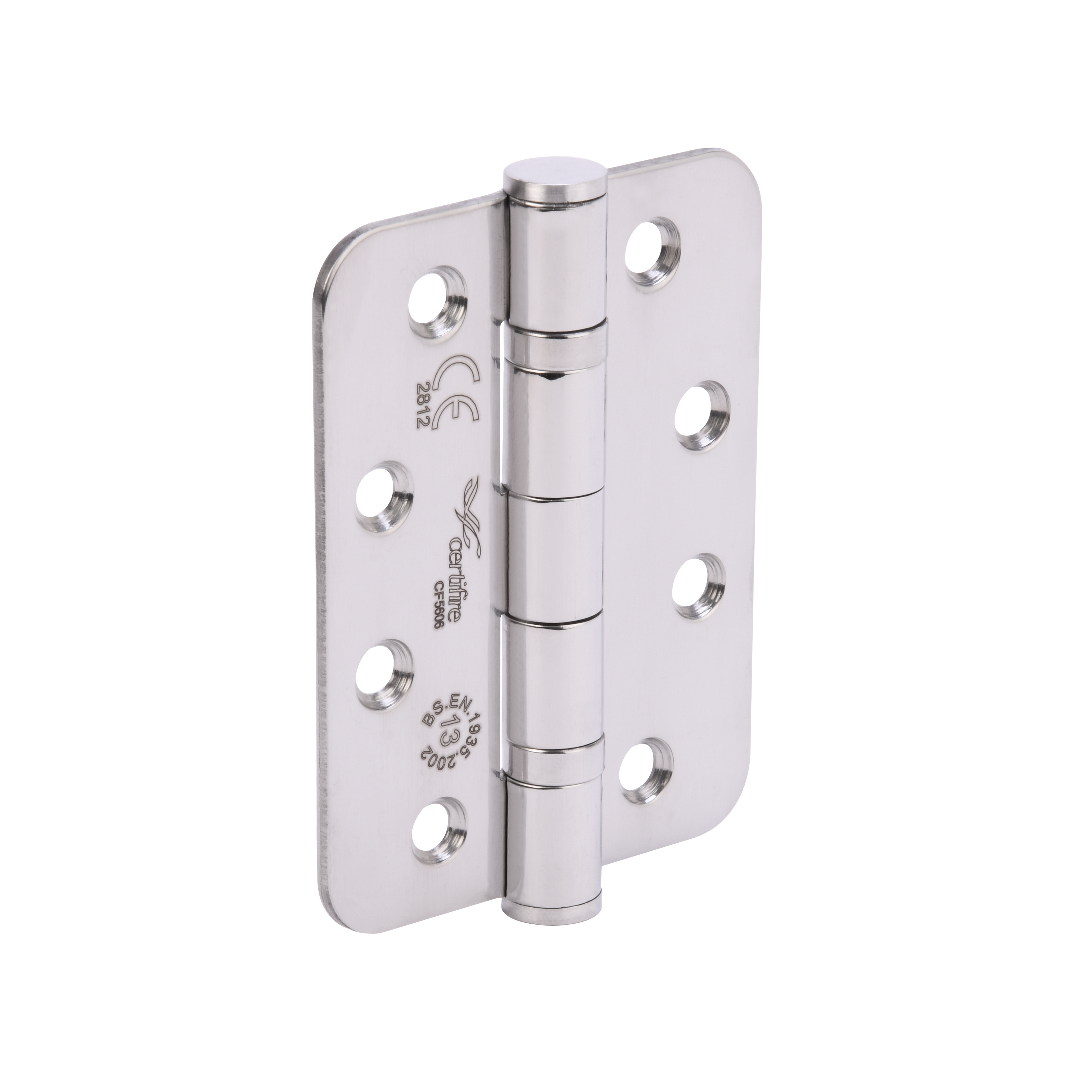 The HUNTA 102 x 76mm Polished Stainless Steel CE13 2BB Radius Butt Hinge is a fire-rated hinge designed for use on timber doors. Tested to endure 200,000 cycles, it is suitable for doors weighing up to 120kg. The recommendation is for three hinges per door installation. This hinge comes with intumescent pads which are required for compliance with the certification. The hinge is radiused for factory fit and finished in polished stainless steel. The product comes with screws made of the same material for fixing.