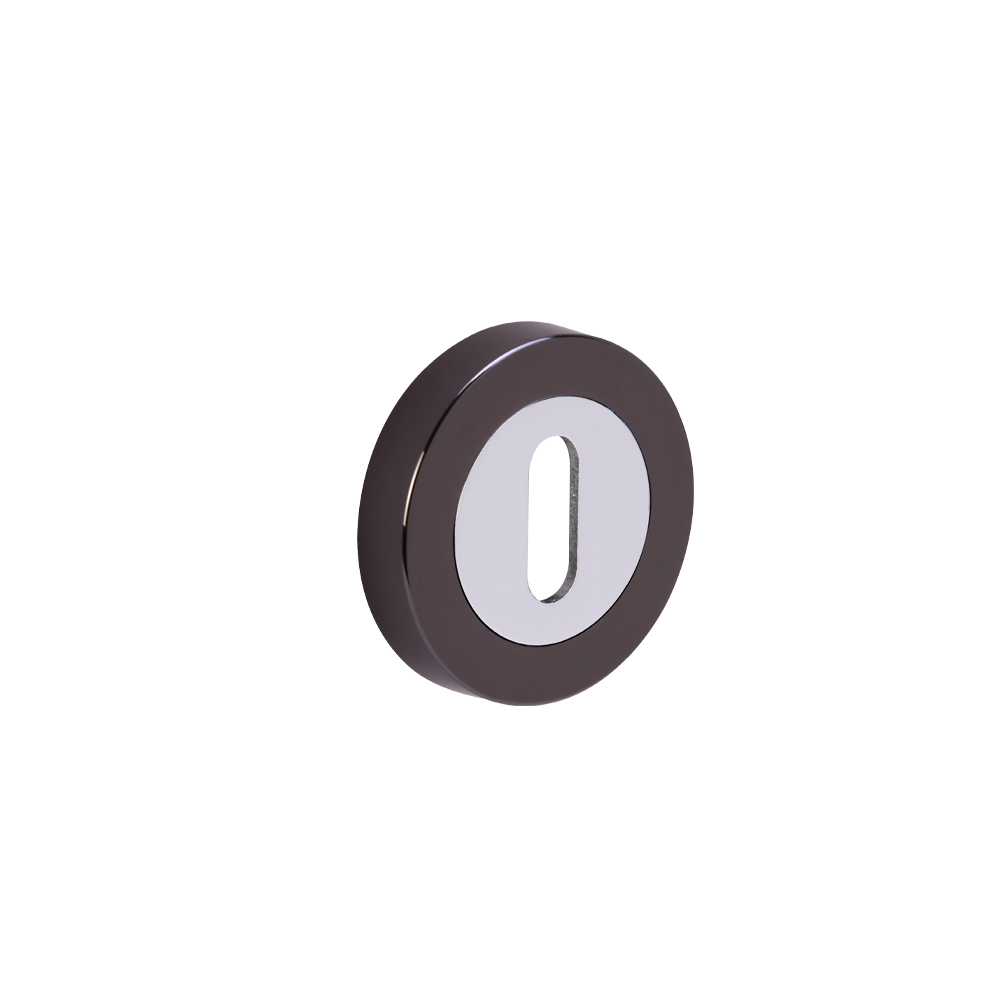 The HUNTA® Keyhole Escutcheon in Black Nickel-Polished Chrome finish is a high-quality accessory tailored for enhancing the appearance and function of door setups, particularly with Hunta Lever on Rose ranges. The escutcheon features a sleek circular design that covers the keyhole, providing a decorative and protective element to the door hardware. The item is supplied with wood screws for easy installation and is designed to complement locking mechanisms by concealing the keyhole. The BNPCP finish offers an elegant and contemporary look.
