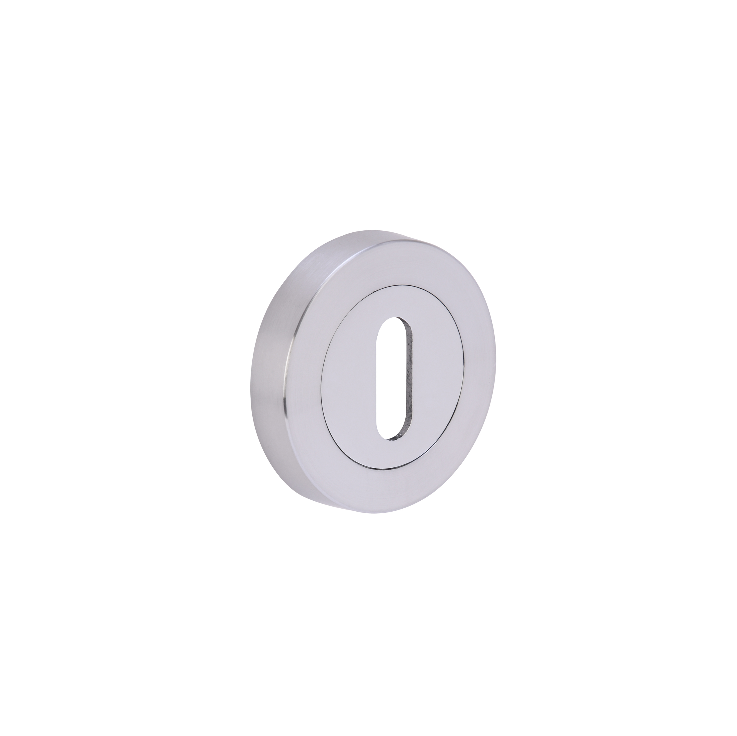 The HUNTA® Keyhole Escutcheon is an accessory designed for use with Hunta Lever on Rose door handle ranges. This high-quality finish escutcheon serves as a decorative and functional keyhole cover, enhancing the aesthetic of door hardware while providing a clean, consistent look for key-operated locks. It is supplied with wood screws and features a polished chrome finish on one side and satin chrome on the other, indicating its dual finish and versatility in matching different door hardware styles.