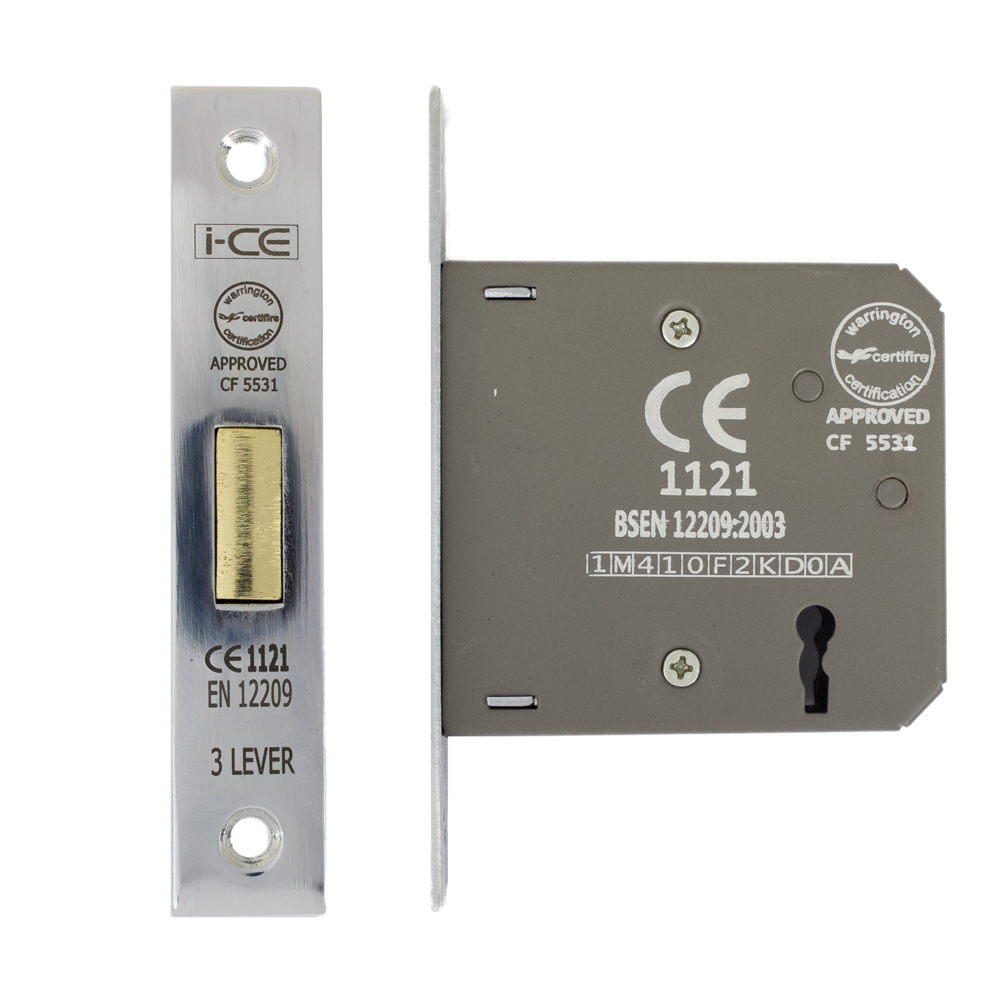 The 3 Lever Deadlock by I-CE LOCKING SYSTEMS is a high-security locking mechanism designed for enhanced door protection. It features a 75mm size with a satin nickel plated finish providing both aesthetic appeal and corrosion resistance. The lock is CE rated under BS EN12209:200 and offers a 60-minute fire rating, assuring its ability to withstand high temperatures during a fire incident, enhancing overall safety. Suitable for bolt-through door furniture, it is easily reversible and can be used on both inward or outward opening doors. The product boasts a 57mm backset and is identified by the manufacturer code LAL1435.