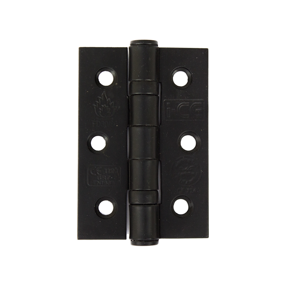 The I-CE LOCKING SYSTEMS Stainless Steel Ball Bearing Hinge is a high-quality door hinge featuring two ball bearings for smooth operation. This hinge is designed to be used in fire-rated applications, as indicated by its CE7 fire rating, making it suitable for FD30 and FD60 fire doors. With a robust construction and a sleek black finish, it is ideal for various residential and commercial settings.