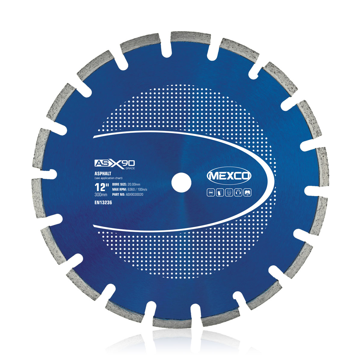 The 300MM ASPHALT X90 GRADE is a professional diamond cutting blade specifically designed for asphalt cutting applications. This high-performance blade features diamond segments around the rim for efficient cutting through asphalt materials, with a 20mm bore size suitable for standard angle grinders and cut-off saws. The X90 grade designation indicates superior cutting performance and durability for demanding professional use.